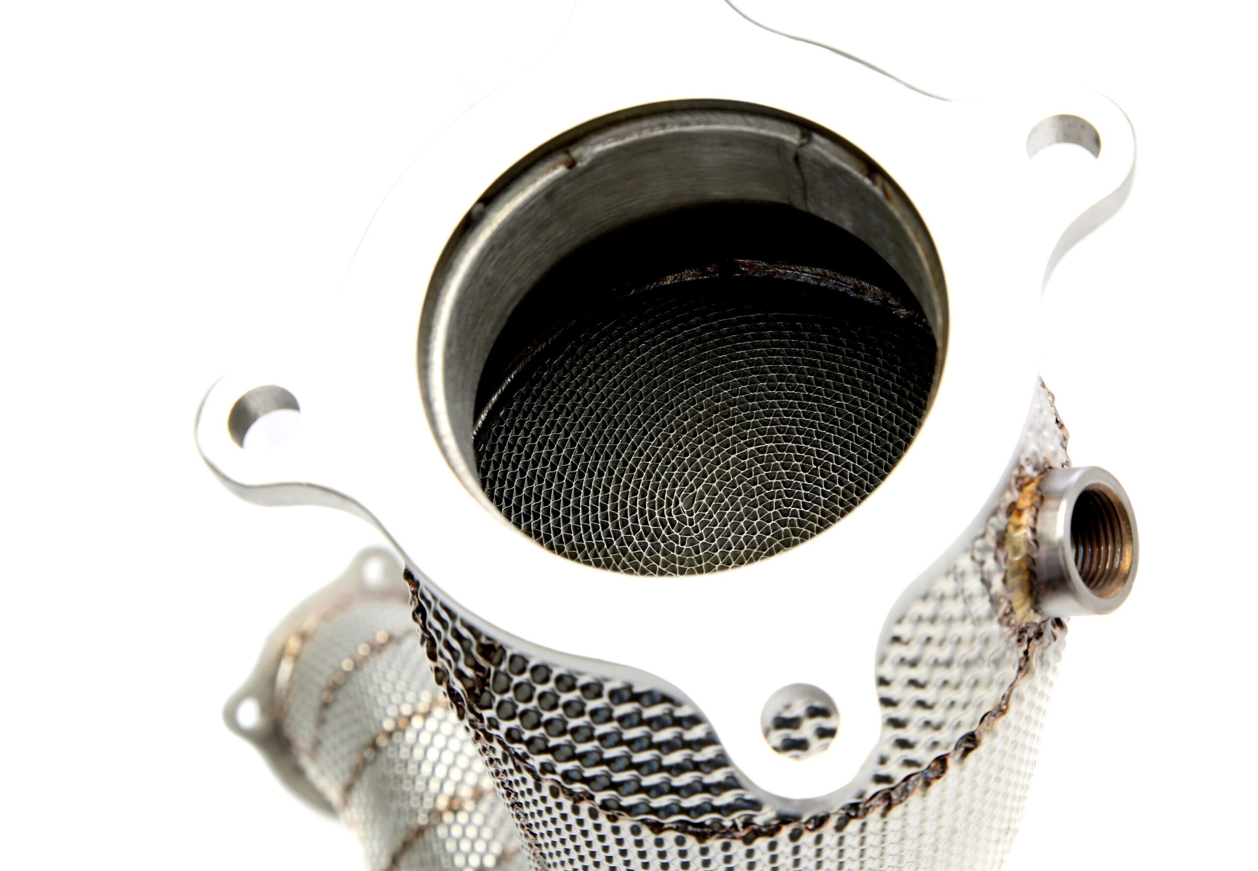 Edelstahl Downpipe mit Hitzeschutz und Katalysator mit 2 Lambdasondenanschlüssen passend für. Porsche Macan Typ 95B_ 2.0TFSI = 237+245+252hp Baujahr 2014 - 2018