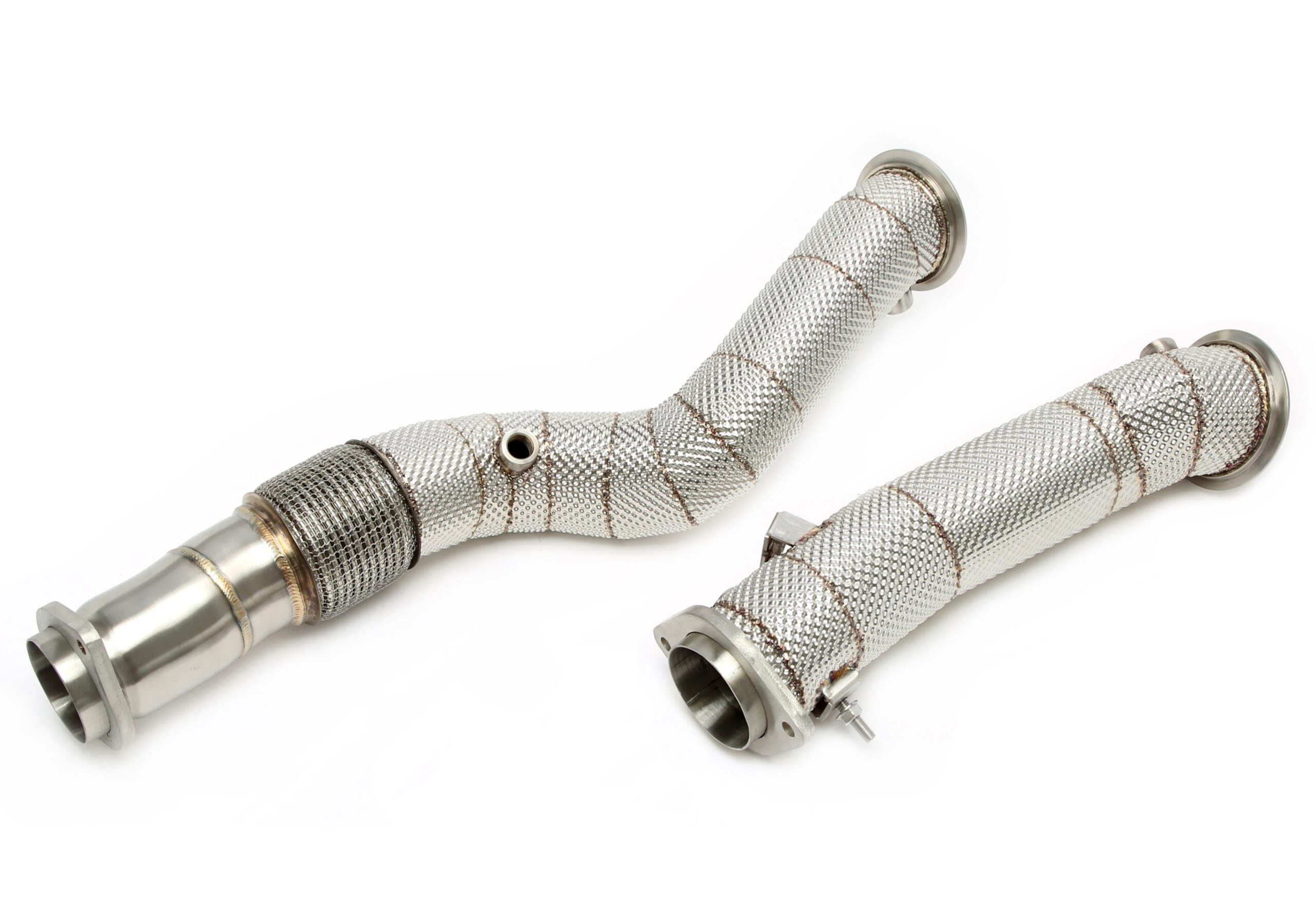 Downpipe mit Hitzeschild und Flexrohr passend für BMW 2er Serie M2 Typ G87 460PS - Motorcode S58 B30 Baujahr 2022 - BMW 3er Serie M3 Typ G80 480+510PS - Motorcode S58 B30 Baujahr 2020 - BMW 4er Serie M4 Typ G82, G83 480+510PS - Motorcode S58 B30 Baujahr 2020 -