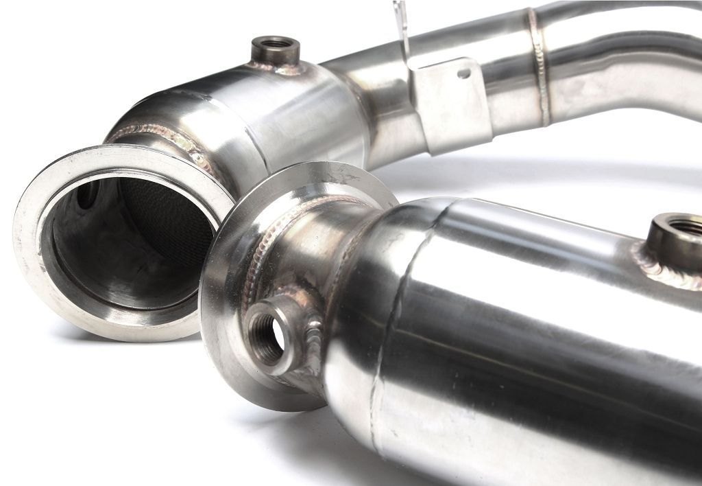 Downpipe mit Katalysator 3/ 76mm Downpipe mit Partikelfilter Anschluß an den serienmäßigen Turbolader Metallkat mit 2 Lambda Anschlüßen am Verbindungdrohr Durchmesser zum OEM-Verbindungsrohr 70mm passend für BMW 5er Serie (F10) M5 Limousine, 412+423+441kW F10, Baujahr.2010 - 2016 BMW 6er Serie (F06 + F06LCI) M6 Gran Coupe, 412+423+441kW F06, Baujahr 2011 - 2015 F06 LCI, Baujahr 2014 - 2017 BMW 6er Serie (F12 + F12LCI) M6 Cabriolet, 412+423+441kW F12, Baujahr 2011 - 2015 F12 LCI, Baujahr 2014 - 2017 BMW 6er Serie (F13 + F13LCI) M6 Coupe, 412+423+441kW F12, Baujahr 2011 - 2015 F12 LCI, Baujahr 2014 - 2017