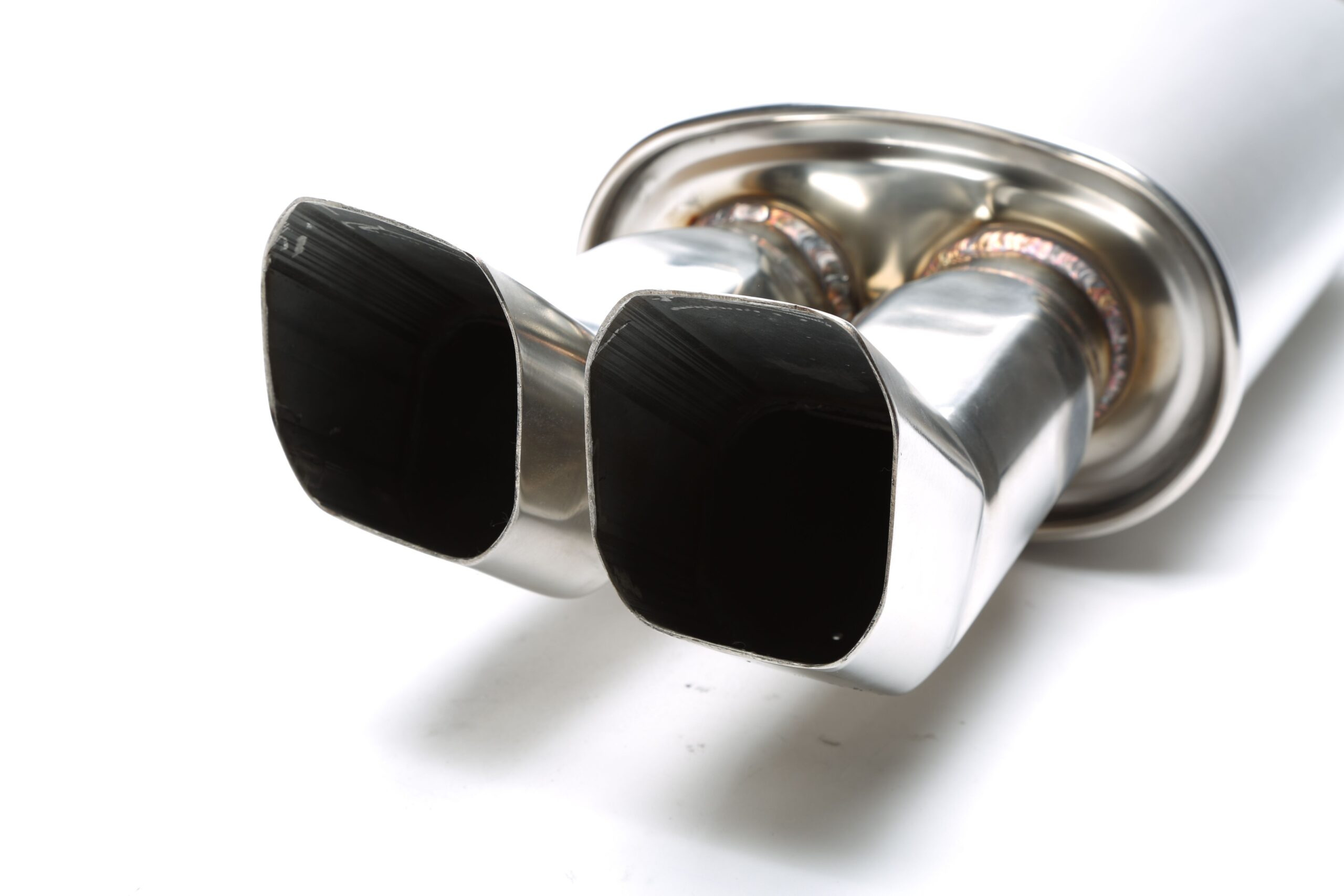 stainless steel sport Hinterachse silencer universal 2 x 85 x 70mm DTM sharp