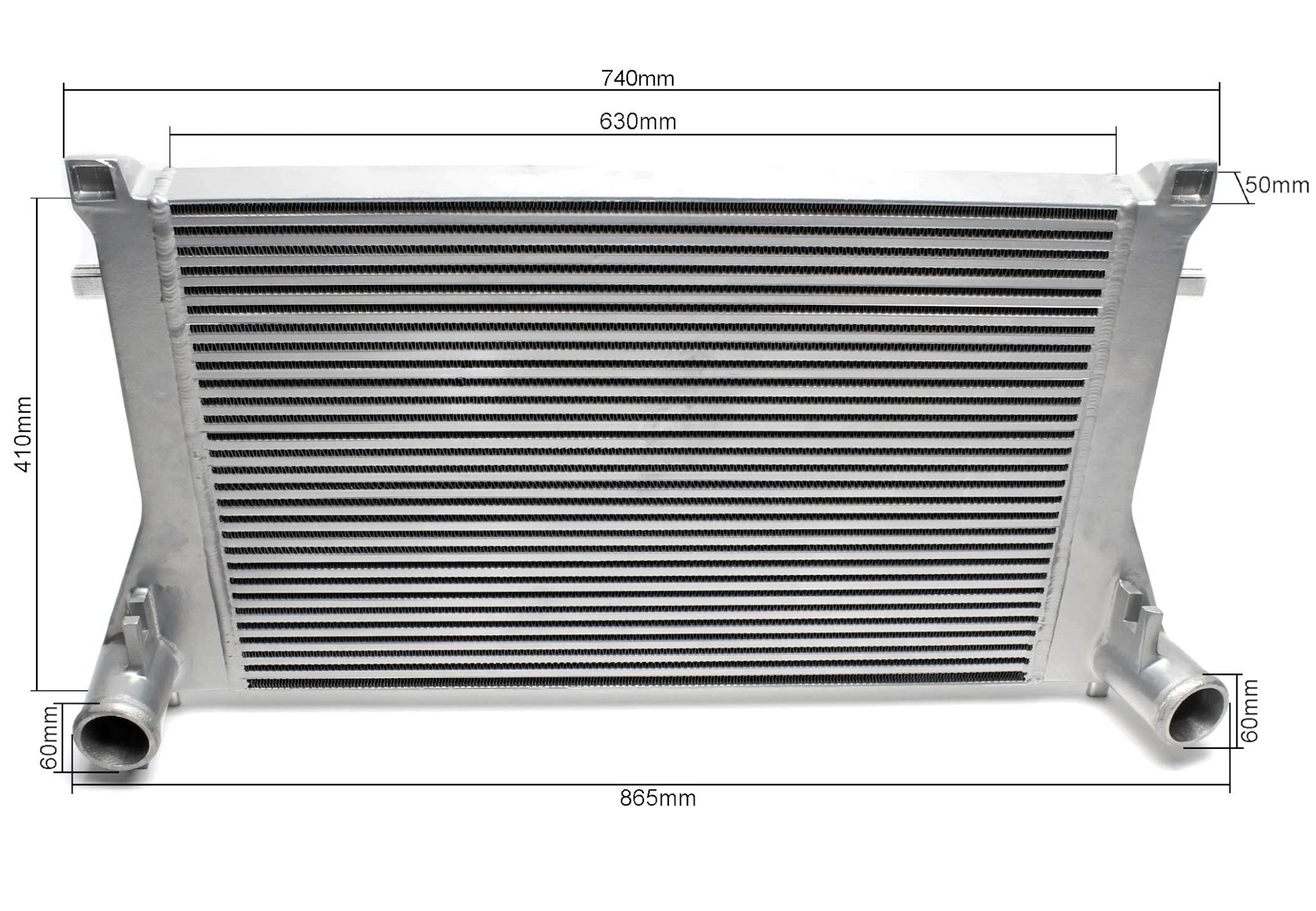 Ladeluftkühler Abmessungen: Netzmaß 630mm x 410mm x 50mm mit Serienanschluß: 60mm Gesamtbreite: 865mm HINWEIS: originale Haltepunkte und Schläuche werden übernommen inkl. Teilegutachten (§19.3) passend für VW Golf VII, Typ AU - 2.0TFSI 162kW / 169kW mit Anpassungsarbeiten auch für folgende Modelle: Audi A3/S3, Typ 8V, Motorcode CJXB + CJXC 206+221kW Audi TT, Typ 8S, Motorcode CNTC + CHHC + CJXF + CJXG 162+169+210+228kW Seat Leon, Typ 5F, Motorcode CJXA + CJXE 195+206kW Skoda Octavia III, Typ 5E, Motorcode CJSA + CJSB 132kW Skoda Octavia III, Typ 5E, Motorcode CHHB 162kW alle hier genannten Modelle ohne Teilegutachten (§19.3) ohne Anpassungsarbeiten auch für folgende Modelle: Seat Leon, Typ 5F, Motorcode CJSA 132kW Skoda Superb III, Typ 3T, Motorcode CHHB + CJXA 162+206kW VW Golf VII , Typ AU, Motorcode CJXB + CJXC 213+221kW VW Golf Alltrack, Typ AU, Motorcode CJSB 132kW VW Golf VII, - Variant, Typ AUV, Motorcode CNTA + CJXB + CJXC 155+206+221kW VW Passat, Typ B8, Motorcode CJSA + CJSC + CHHB 132+162kW alle hier genannten Modelle ohne Teilegutachten (§19.3)