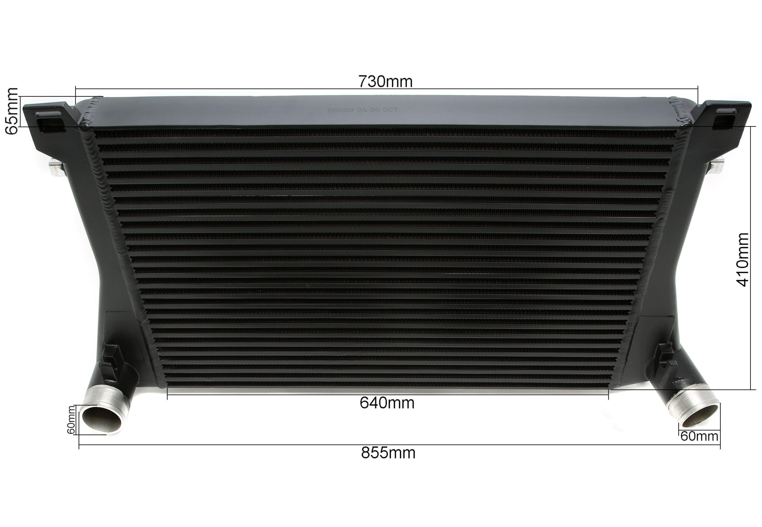 Ladeluftkühler Abmessungen: Netzmaß 640mm x 40mm x 65mm mit Serienanschluß: 60mm Besonderheiten: mit versetzen Innenlamellen passend für VW Golf VII, Typ AU - 2.0TFSI 162kW / 169kW mit Anpassungsarbeiten auch für folgende Modelle: Audi A3/S3, Typ 8V, Motorcode CJXB + CJXC 206+221kW Audi TT, Typ 8S, Motorcode CNTC + CHHC + CJXF + CJXG 162+169+210+228kW Seat Leon, Typ 5F, Motorcode CJXA + CJXE 195+206kW Skoda Octavia III, Typ 5E, Motorcode CJSA + CJSB 132kW Skoda Octavia III, Typ 5E, Motorcode CHHB 162kW ohne Anpassungsarbeiten auch für folgende Modelle: Seat Leon, Typ 5F, Motorcode CJSA 132kW Skoda Superb III, Typ 3T, Motorcode CHHB + CJXA 162+206kW VW Golf VII , Typ AU, Motorcode CJXB + CJXC 213+221kW VW Golf Alltrack, Typ AU, Motorcode CJSB 132kW VW Golf VII, - Variant, Typ AUV, Motorcode CNTA + CJXB + CJXC 155+206+221kW VW Passat, Typ B8, Motorcode CJSA + CJSC + CHHB 132+162kW
